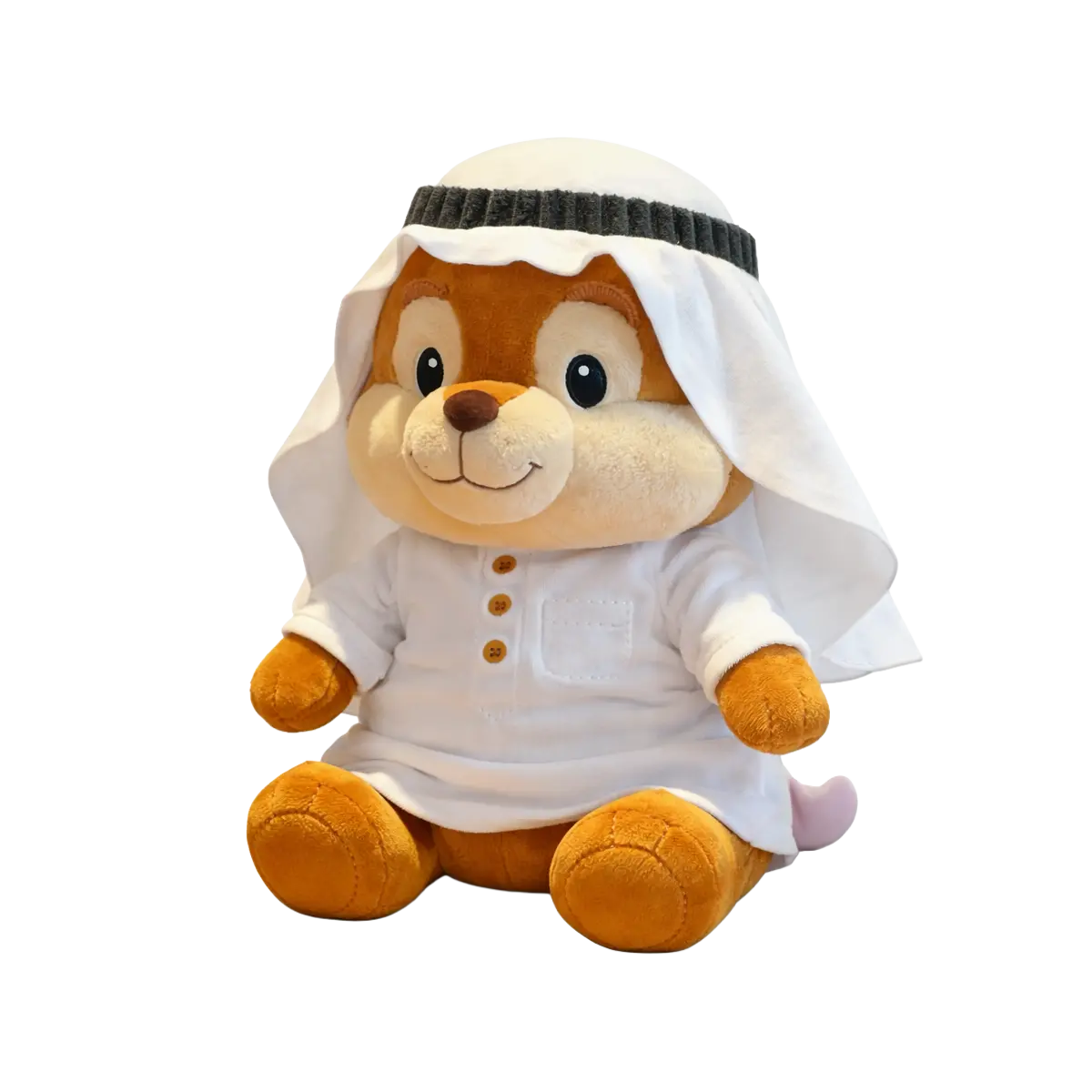 The Dubai Bear 100 cm is a statement piece designed to create immediate visual impact. With its traditional white outfit and matching head covering, this plush bear stands out as a premium themed product. As a result, it attracts strong attention in storefront displays and large retail environments.