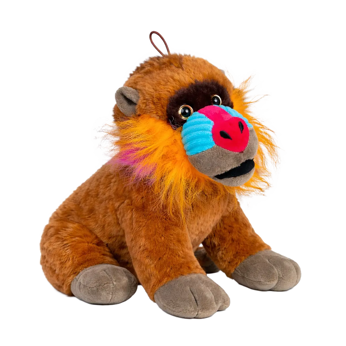 Make a bold statement in your assortment with the Monkey 100 cm plush. This impressive large-format monkey instantly captures attention with its striking mandrill-inspired face, vibrant blue and red accents, and expressive eyes. Its generous size transforms it from a simple plush toy into a true display piece.