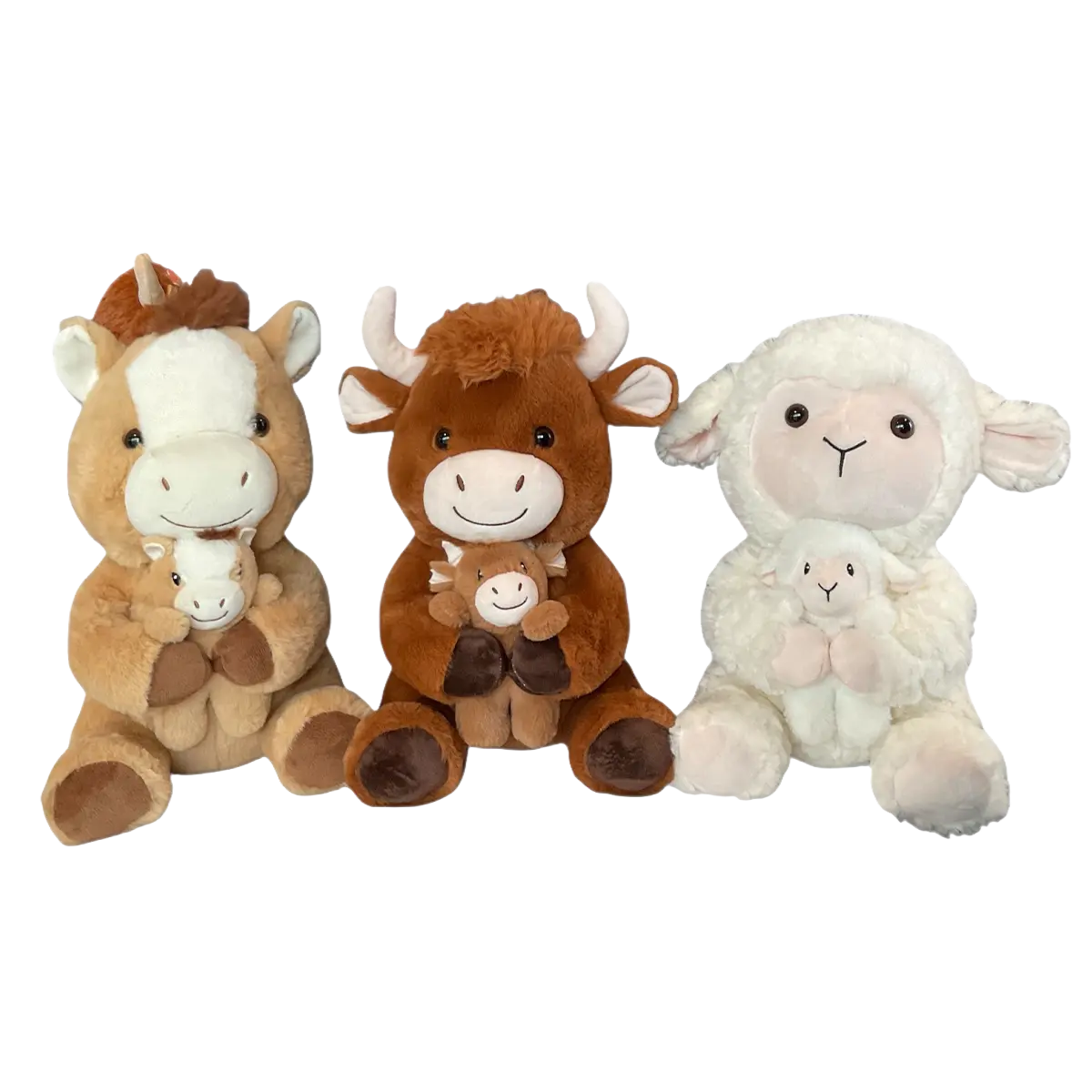Each plush measures 30 cm, offering a strong shelf presence while remaining practical for retail. The soft textures, gentle expressions, and carefully finished details create a premium look and feel. From the fluffy sheep to the friendly cows, every design radiates comfort and affection. The baby plush nestled in the parent’s arms enhances the emotional value and makes the product especially gift-worthy.