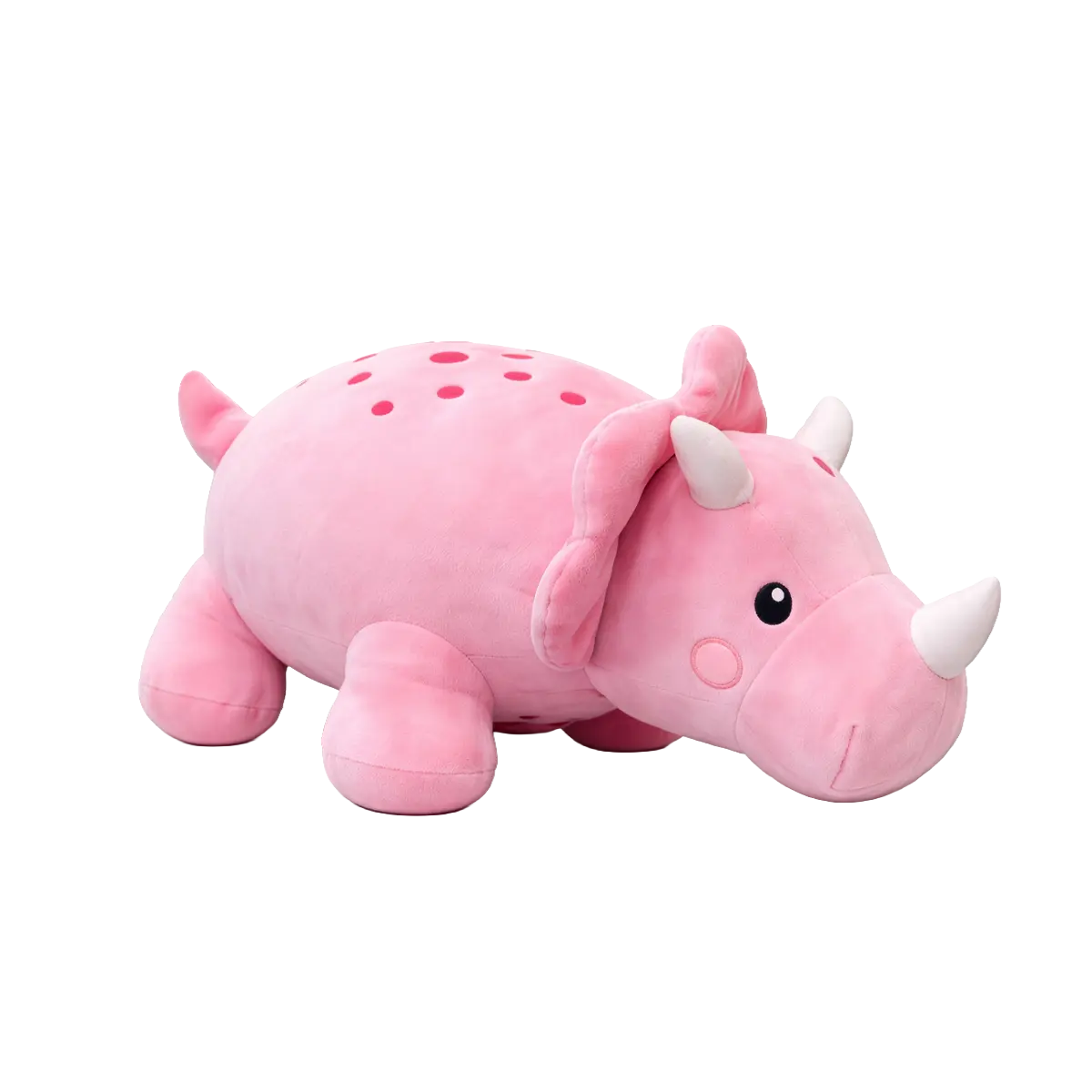 The Dino Rhino 2 assorted 110cm plush combines size, softness, and a unique design. It is highly visible, easy to sell, and suitable for multiple sales channels. Therefore, it is a strong addition to any plush assortment.