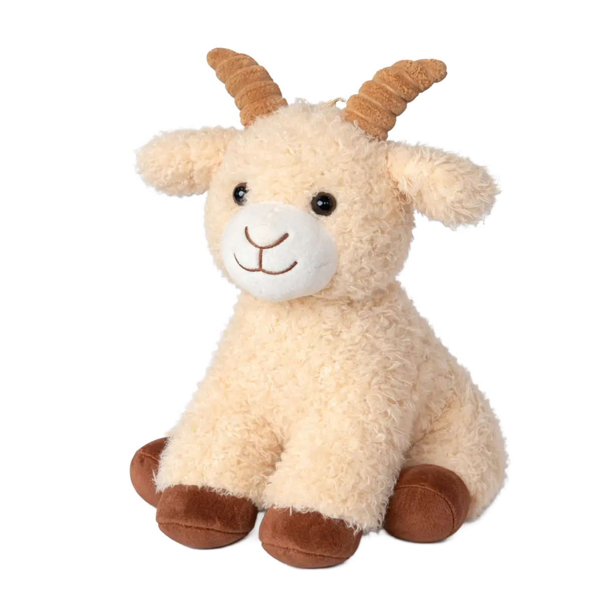The soft, textured plush fabric gives the goat a cozy and authentic look. Meanwhile, the friendly facial expression and detailed horns add character without making the design too busy. Because of this balance, the Sitting Goat appeals to both children and adult gift buyers.